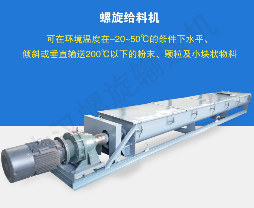 螺旋給料機又叫螺旋喂料機,可在環境溫度在-20~50℃的條件下水平、傾斜或垂直輸送200℃以下的粉末、顆粒及小塊狀物料。大漢螺旋給料機可根據輸送物料及應用環境選擇碳鋼、不銹鋼材質。