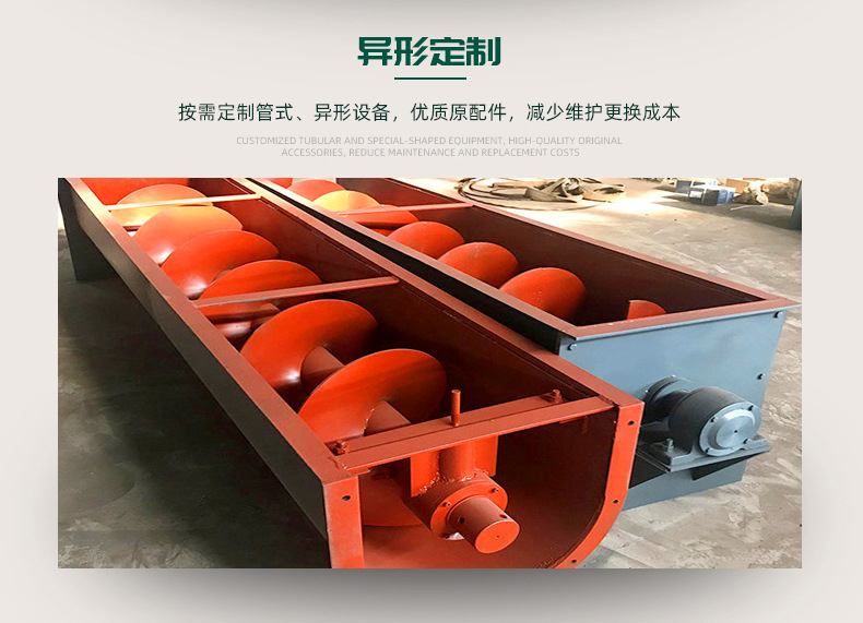 螺旋給料機主要由驅動裝置、頭節、中間節、尾節、頭尾軸承、進出料裝置等幾部分組成。