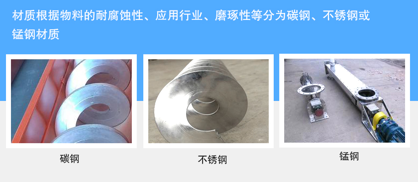 無軸螺旋體:材質(zhì)為不銹鋼或碳鋼。